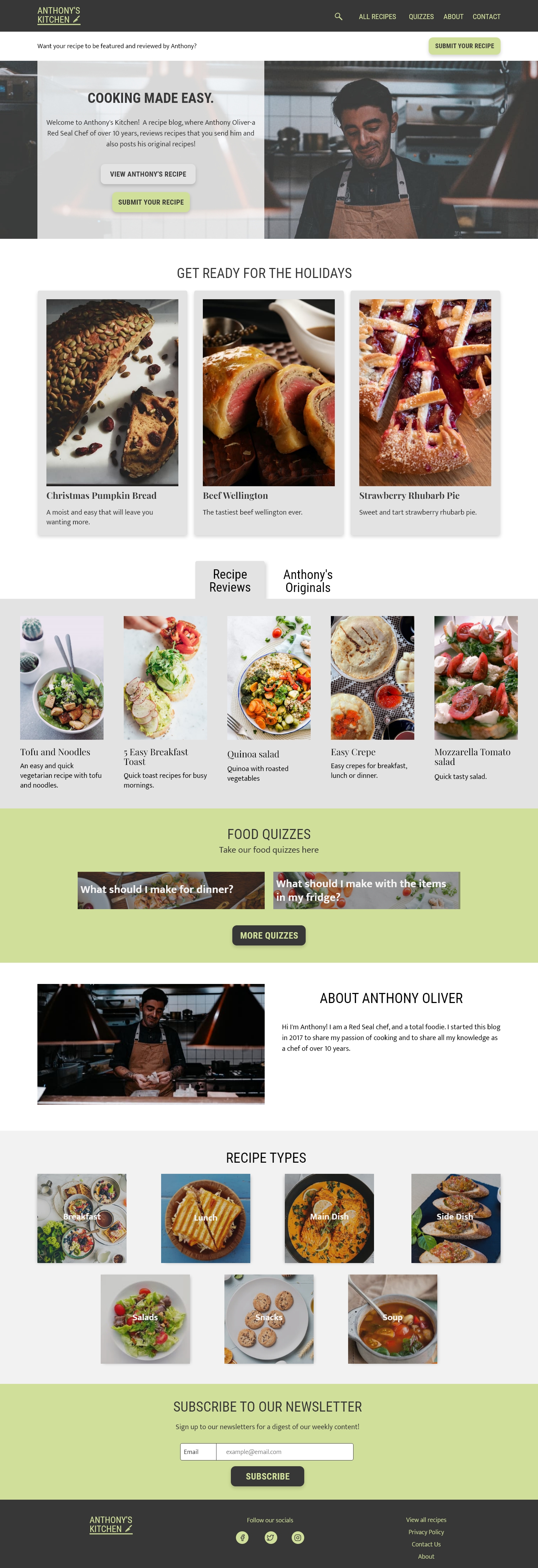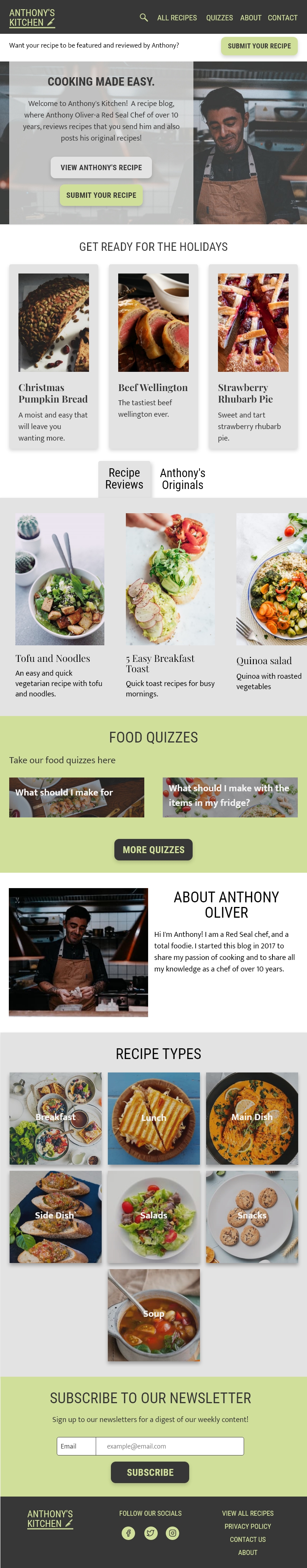 Anthony is a fictional client who manages a recipe website, who has built an audience from his “Recipe Review” blog posts where he re-creates recipes submitted by his visitors and reviews them. He wants to create an engaging landing page for his website while still standing out from the rest.